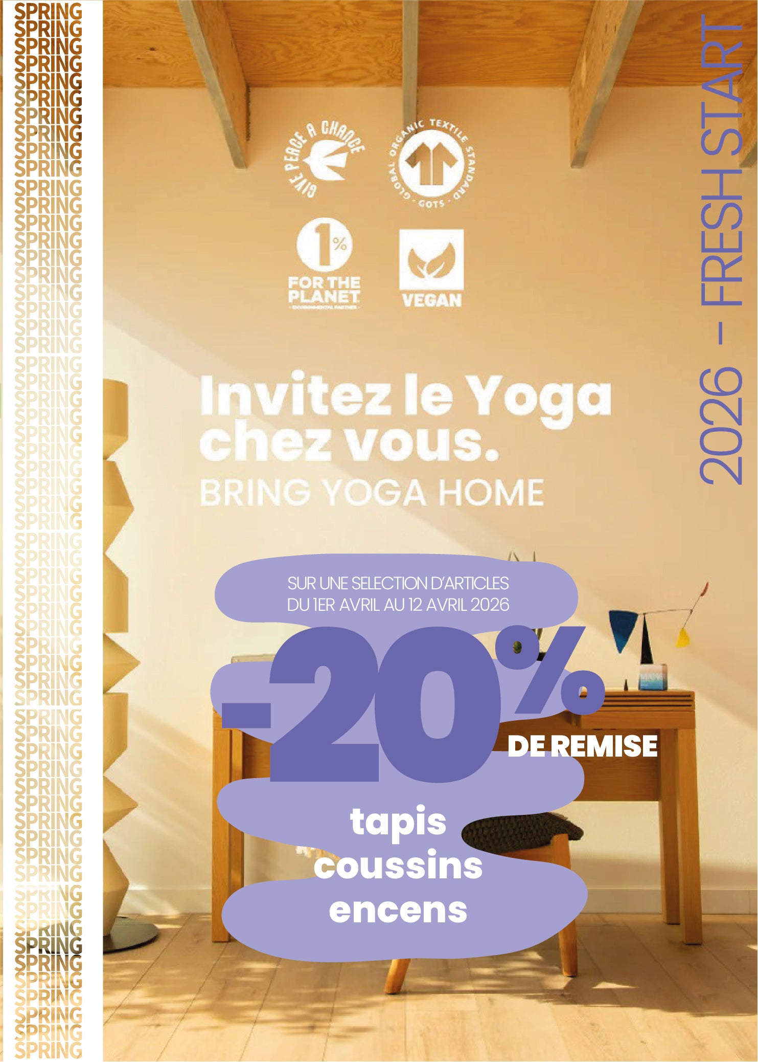 Que vous soyez débutant ou pratiquant avancé, notre gamme diversifiée répond à vos besoins. Des tapis de yoga aux accessoires de méditation, nos produits sont conçus pour vous accompagner dans votre pratique tout en préservant la nature et votre santé.